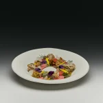 A reversible plate with irregular thickness, shaped by the demands of a closed slip-casting mold—built to hold pressure, to resist impact. The center is slightly thickened, the rim thin and beveled, echoing the porcelain of Bidasoa by André Ricard. Its raised center rises like a small hill emerging from the surface, a quiet topography that brings depth and variation to the act of serving. It creates more possibilities of use on either side, while its stackable design saves space without losing presence. Glazing is applied only to the defined areas of use, making cleaning easier and allowing a single firing in the oven. Made by Ángel Alfaro, who began his career at Lladró at just 19, and today runs his own workshop in Tavernes Blanques (Valencia), where he continues to apply the same standards of quality and first-rate porcelain.