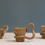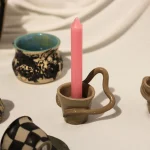 With its raw and unadorned body, Menyé Candleholder invites viewers to explore its form from multiple perspectives. Each angle reveals a new aspect of its intricate design, reflecting the dynamic interplay of shape and imagination. The transparent glazes enhance its natural beauty, adding a delicate sheen that highlights the flowing contours of the piece.