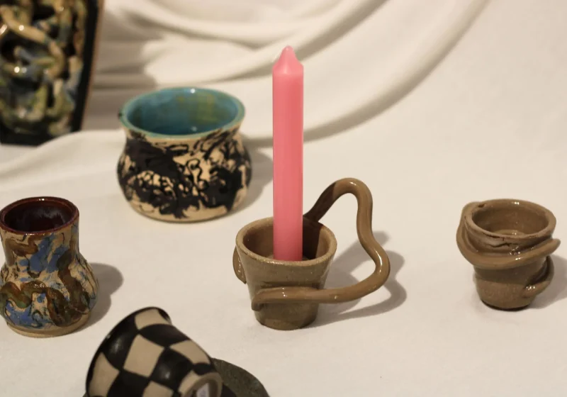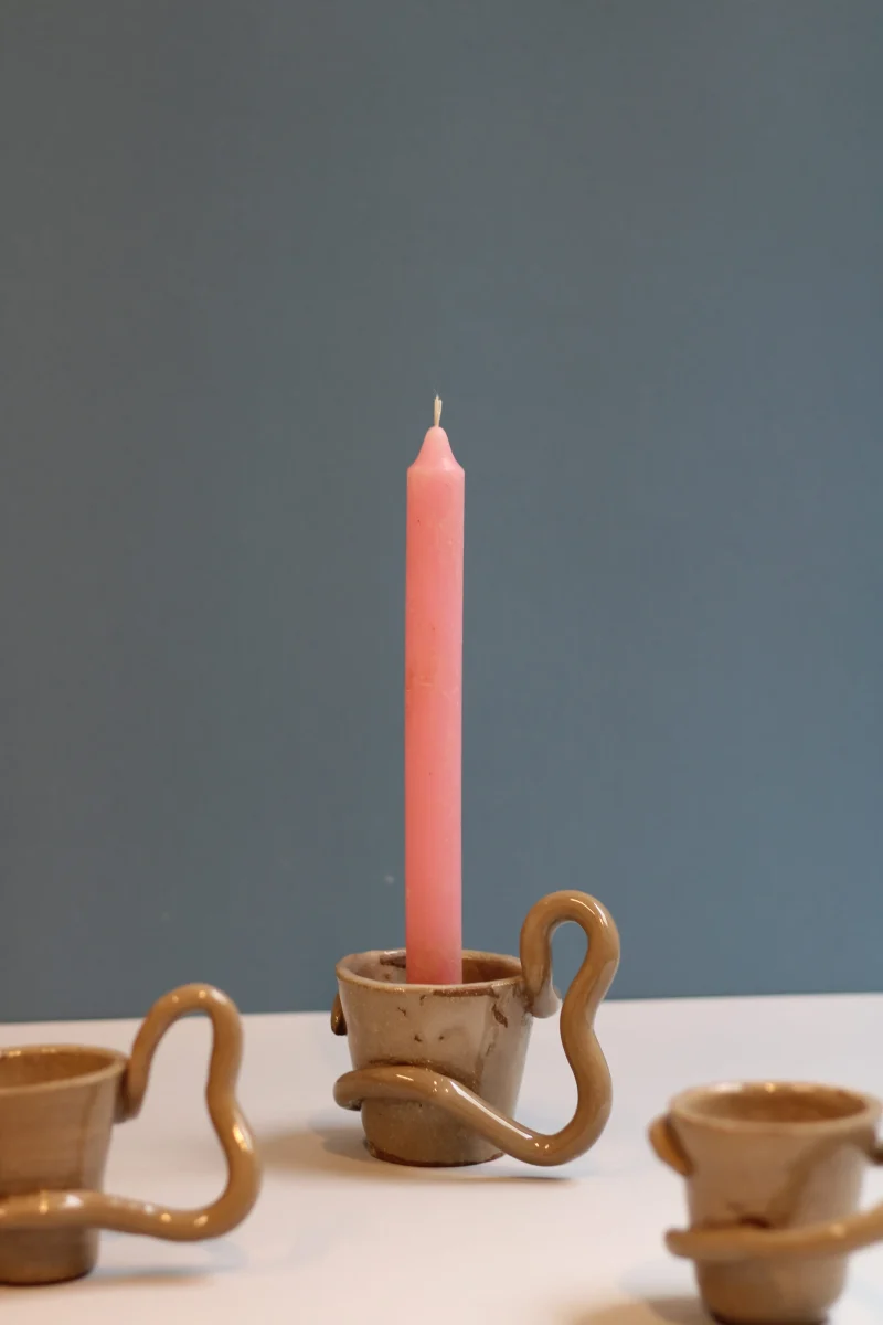 With its raw and unadorned body, Menyé Candleholder invites viewers to explore its form from multiple perspectives. Each angle reveals a new aspect of its intricate design, reflecting the dynamic interplay of shape and imagination. The transparent glazes enhance its natural beauty, adding a delicate sheen that highlights the flowing contours of the piece.