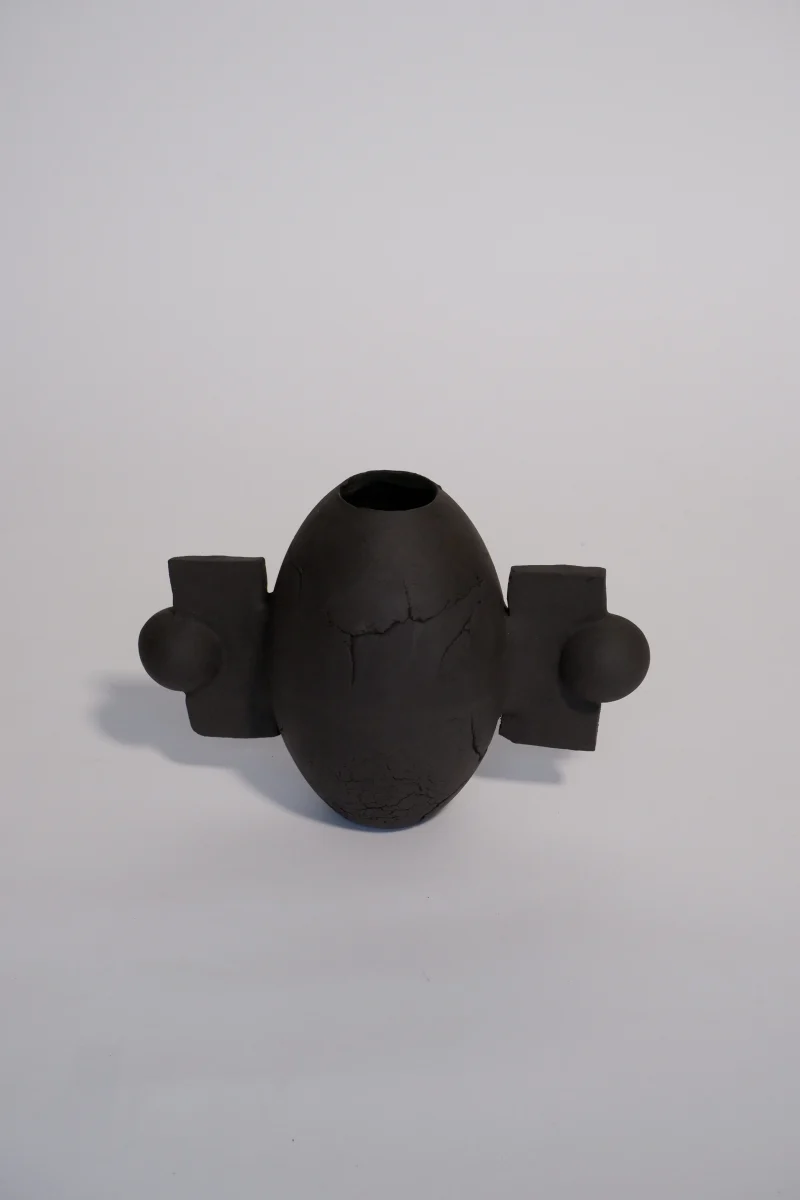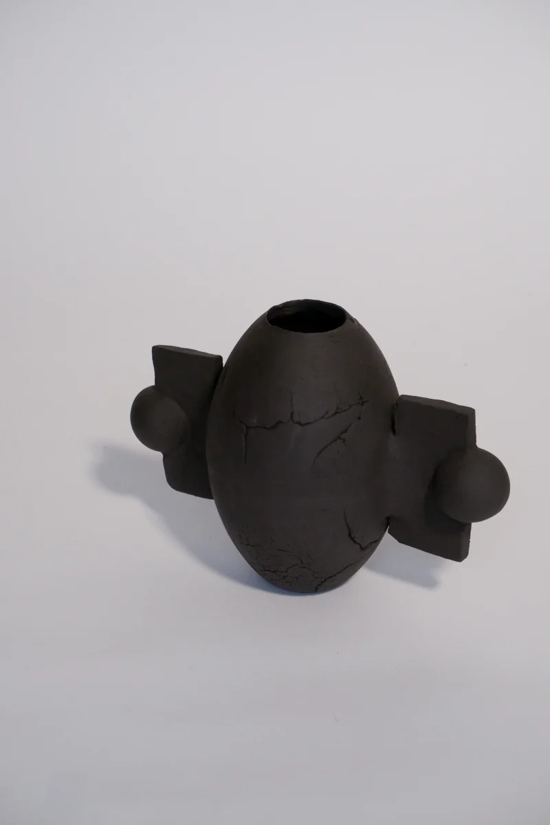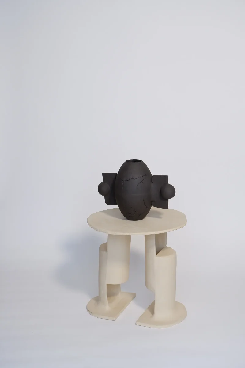 Part of Abstract Formations collection, Mergge vase combines simple elemental shapes to create a bold, sculptural object with brutalist and rustic elements. With textural irregularities as part of the character.