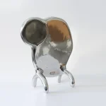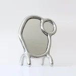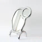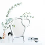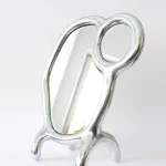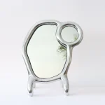 Mi-RR 13 by Studio Speculo is an object mirror that intrigues with its form. The frame’s shape attempts to capture the disappearance of the classic, standing mirror at the moment of transformation into a cosmic object. It reflects the surrounding world while blending into our living spaces, yet triggering dialogs about the forms and functions of everyday objects.