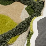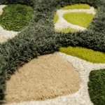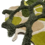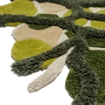 Rendered in rich, vibrant shades of green, the “Micro” rug evokes the depth and variety of the natural world. Its flowing, irregular shapes mirror the textures and forms of magnified plant cells, creating an abstract design that feels both dynamic and serene. The softness of the yarns adds to its tactile appeal, making it as comfortable as it is visually stunning.