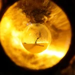 A standout within “Sympoietic” is the Microbiomes series. These lighting sculptures, crafted by Sabrina, encapsulate miniature ecosystems. Within the bioplastic forms lie tiny glass spheres filled with agar and roots, providing a nurturing space for microorganisms. As these micro-inhabitants thrive and evolve, they subtly alter the sculpture’s appearance, reflecting the organic behaviors of life within. Sabrina’s designs echo transformational encasements found in nature, like nests, chrysalises, and cocoons.