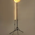 The height of the Microbiome II can be adjusted by changing the height of the recycled tripod on which the piece is mounted.