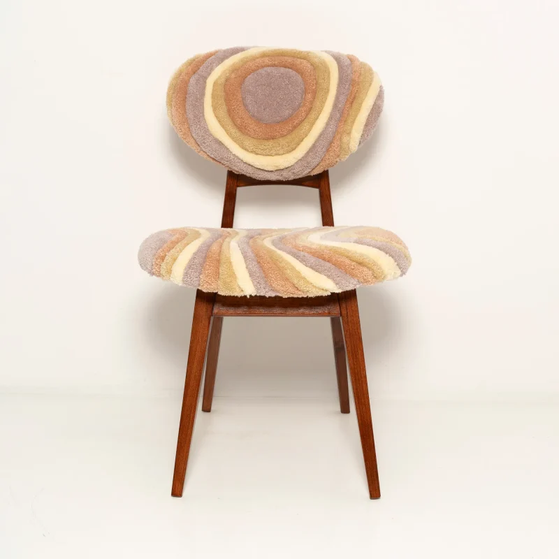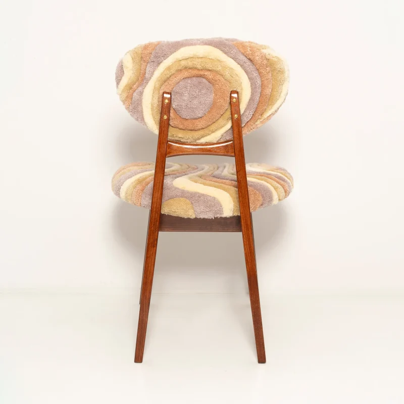 Seat and back is hand tufting beige wool. Absolutely hand made technic. Every chair is unique and can be a bit different.