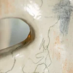 Midsummer’s Night by Mina Wright is a unique piece inspired by the iconic Shakespare’s comedy. Throughout the lines, we can see the reflection of shapes that portray nature itself. We used traditional ceramic techniques with clay. This vase is hand-painted with underglaze pencils and stoneware glaze.