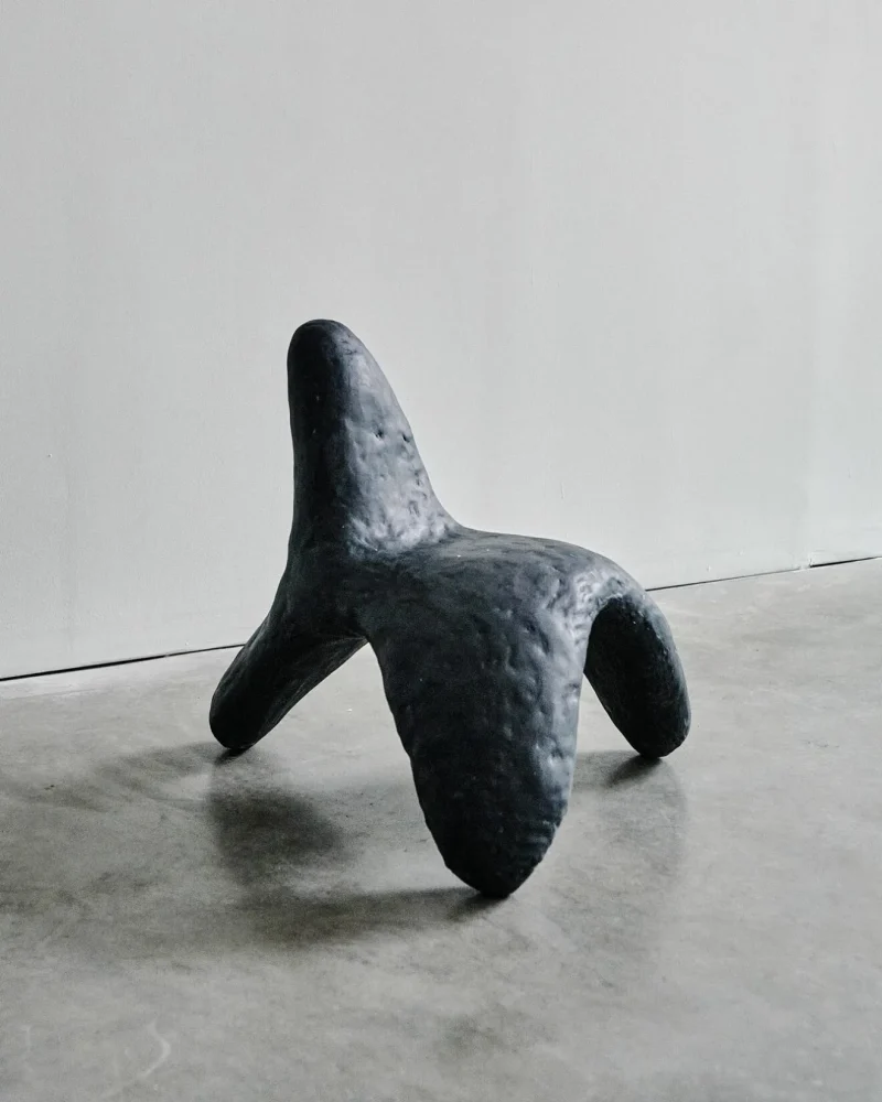 Small chair made out of cast plaster.