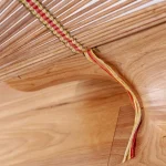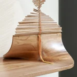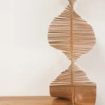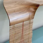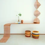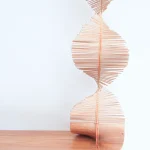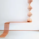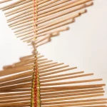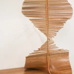 Inspired by the craftsmanship of the Mehinaku people, artist and researcher Maria Fernanda weaves the work with cylinders of pink jequitiba wood in reference to the buriti stalks traditionally used by women in the village with whom she learned the technique.