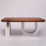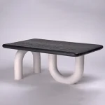 This coffee table by Donna Maria Feghali is perfect for use alone in a small sitting space or combined to accommodate a larger area. The minimal design, featuring an arched cylindrical base, creates an elegant and visually intriguing perspective, making it ideal for adding a playful yet sophisticated touch to any space.