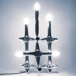 Miniquetschi by Thomas Waidhofer is a compact continuation of the Quetschi series, following the same conceptual approach but using slimmer 30mm aluminum tubes instead of 50mm. Like its larger counterpart, Miniquetschi is built around crimped cross connections—where deformation serves both structural and aesthetic purposes. The joints add stability, define shape, and function as unique stylistic elements. Manufactured with a custom-built press, the crimping process generates high tension in the material, often resulting in cracks or fractures that are embraced as part of the object’s character. Unlike the original Quetschi, however, the electrical wiring in Miniquetschi is hidden—offering a cleaner, more compact form while still preserving the raw and expressive nature of the series.