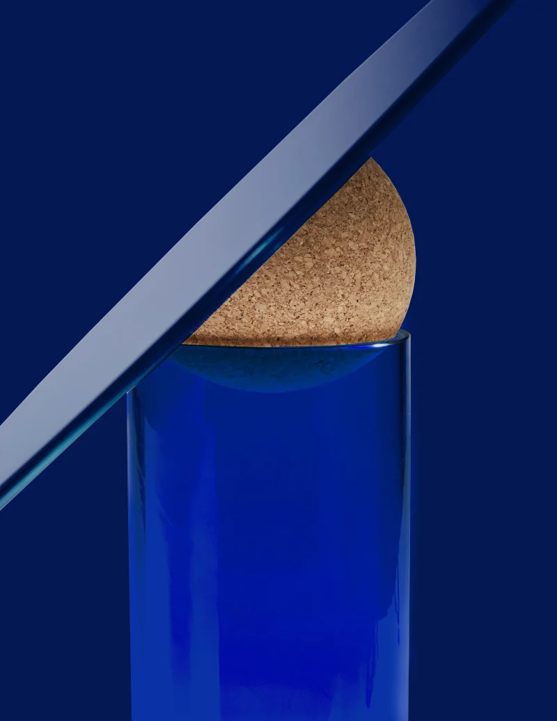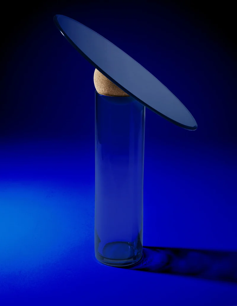 Bauhaus Blownglass Cobalt blue mirror Colored Glass Cork Decor Makeup mirror Mirror Mirror design Sculpturaldesign Slowdesign Space Age Woman Made Woman-made Gifts
