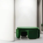 The Mod Wood Coffee Table features an asymmetrical, minimalist design crafted from wood with a smooth enamel coating. Both the tabletop and leg arrangement embrace a dynamic, unconventional shape, adding visual interest to any space. Whether used as a foundational piece in the living room or as a bold accent, this coffee table effortlessly balances style and functionality.