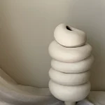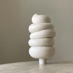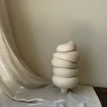 This ceramic sculpture by Françoise Jeffrey Ceramics features off-white earthenware. Embracing a soft minimalist aesthetic, it exudes a calming presence, reminiscent of stacked stones in a Zen garden.