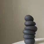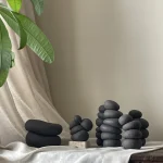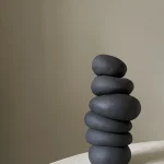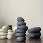 This ceramic sculpture by Françoise Jeffrey Ceramics features black stoneware. A soft minimalist aesthetic exudes a calming presence, reminiscent of stacked stones in a Zen garden.