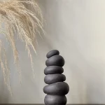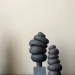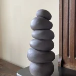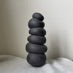 This ceramic sculpture by Françoise Jeffrey Ceramics features black stoneware. Embracing a soft minimalist aesthetic, it exudes a calming presence, reminiscent of stacked stones in a Zen garden.