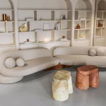 The shape of the modular Mode Sofa is a combination of round and square shapes, organically complementary.