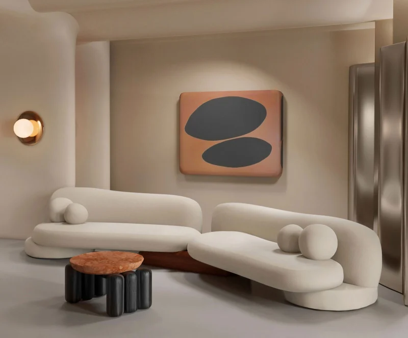 The shape of the modular Mode Sofa is a combination of round and square shapes, organically complementary.