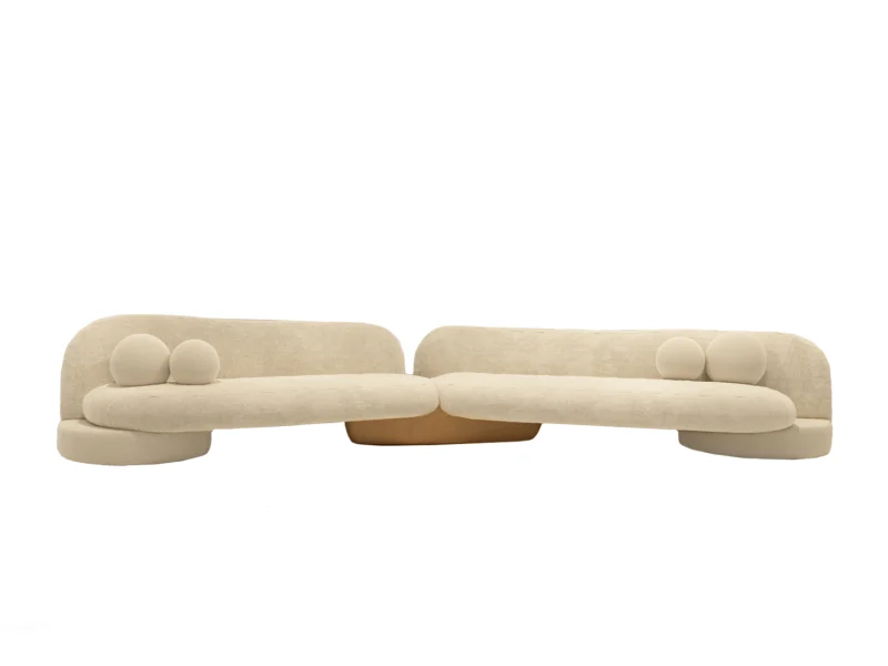 The accent of the sofa is a central insertion with natural wood or stone finish.