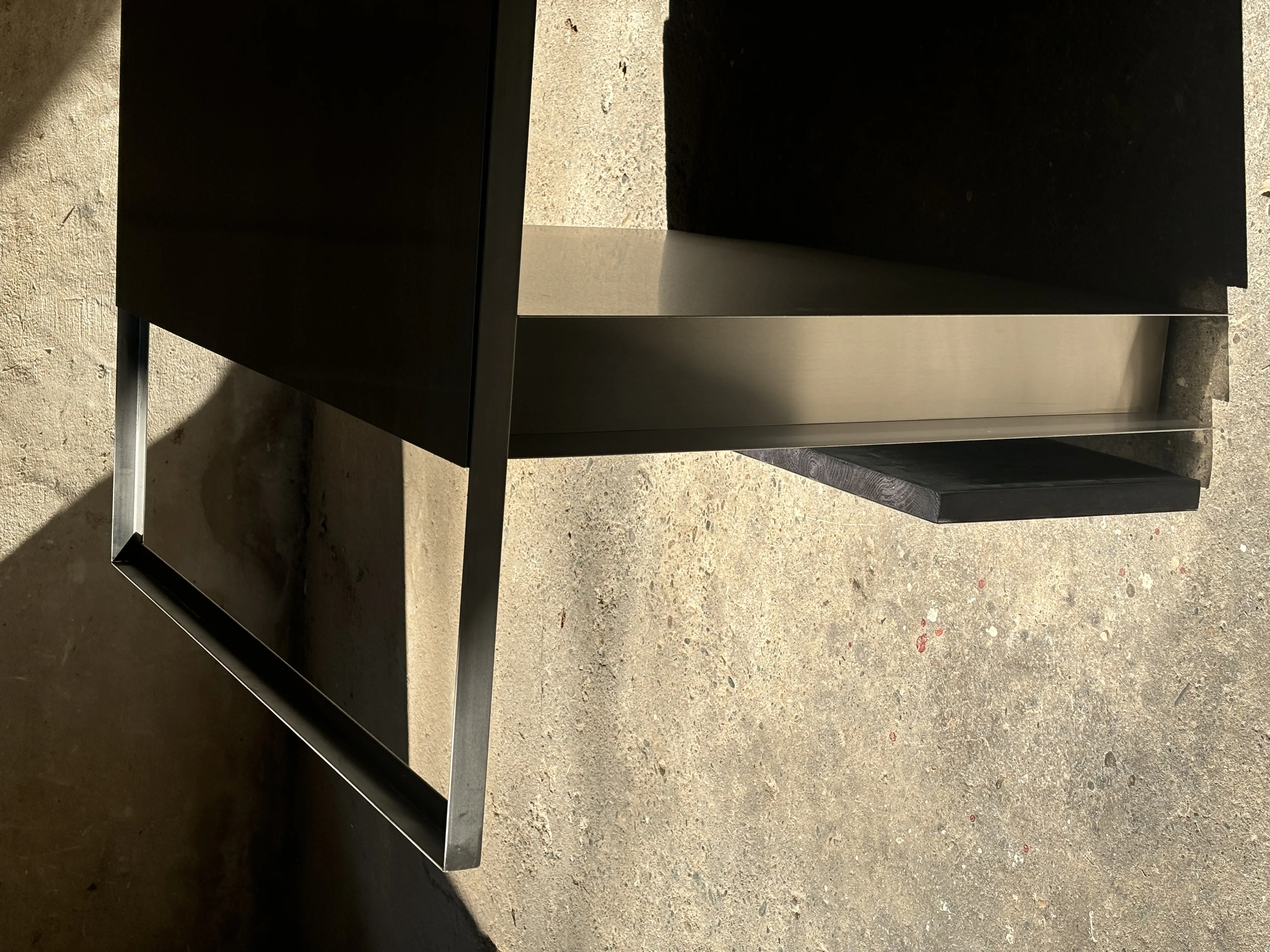 Designed and produced in Germany by case studios, executing on the initiative vision by Luis Dobbelgarten to create a Modular Stainless Steel and Blackwood Table.