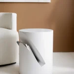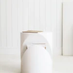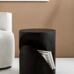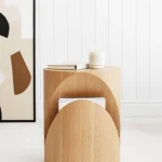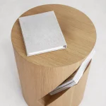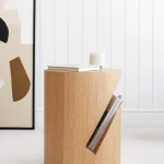 The Mola side table by Yet Design Studio is made of solid oak veneer/plywood and can be used both as a side table and a nightstand. The chamber in the body is designed as a newspaper/magazine holder, giving the product a different function. It is a product where you can feel the texture, warmth and naturalness of wood in the most effective way. Due to the unique structure of each tree, each product may have a different texture, vein structure, pattern and tone. These are the features that reflect the naturalness of the tree. It is handcrafted using natural methods by local artisans.