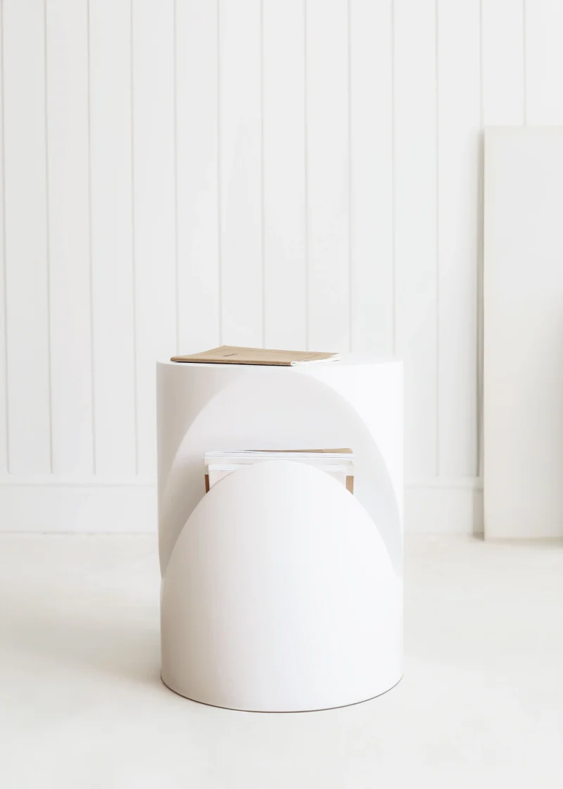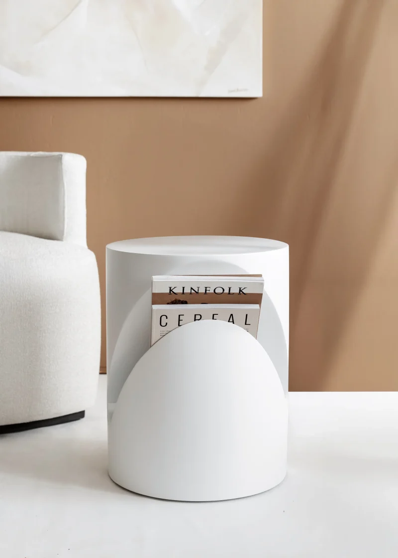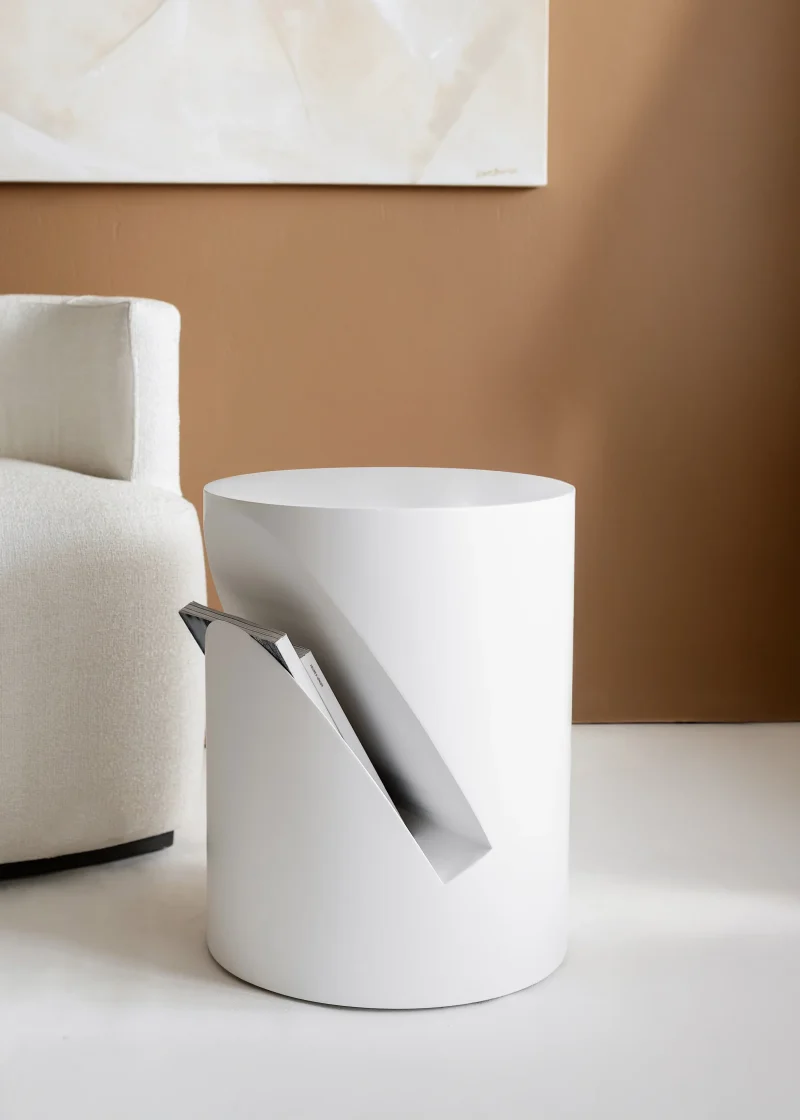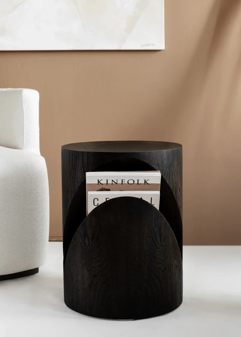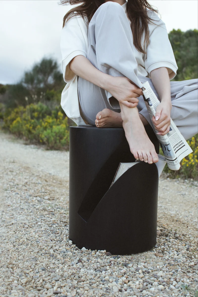 The Mola side table by Yet Design Studio is made of solid oak veneer/plywood and can be used both as a side table and a nightstand. The chamber in the body is designed as a newspaper/magazine holder, giving the product a different function. It is a product where you can feel the texture, warmth and naturalness of wood in the most effective way. Due to the unique structure of each tree, each product may have a different texture, vein structure, pattern and tone. These are the features that reflect the naturalness of the tree. It is handcrafted using natural methods by local artisans.