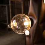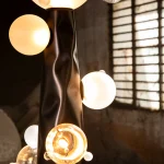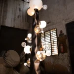 The Molecule Floor Lamp by Nitush and Aroosh merges sculptural design with functional lighting. Inspired by molecular forms, it features blown glass balls—both clear and frosted—arranged to create a captivating interplay of light. The crumpled stainless steel body balances Nitush-Aroosh’s signature textured finish with elements of light, creating a harmony where the materials don’t simply coexist but amplify each other. The intricate texture interacts uniquely with light, illuminating the surface and evoking subtle, layered shadows. This careful fusion invites viewers to engage with the piece from various perspectives, allowing light and material to evolve together in a form that is both functional and captivating.