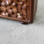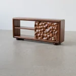 The Monkel Cabinet is a stunning addition to its new collection of furniture pieces that captivate the senses. Finished in a rich Penny Chocolate brown hue, this exquisite cabinet is nothing short of a visual and tactile masterpiece. The Monkel Cabinet artfully combines an array of contrasting elements—smooth surfaces juxtaposed with rough textures, vibrant highlights intermixed with darker tones, and strong, straight lines paired with graceful curves. This harmonious interplay creates a rich tapestry of contrasts, transforming the cabinet into a veritable casserole of poles that exude an enchanting sense of sanctuary and tranquillity within its surroundings. In addition to its captivating aesthetic, the cabinet is embellished with the studio’s signature DHS OG Nugget, a distinctive hallmark that underscores its uniqueness. This statement piece boasts a multifaceted design, ensuring its ability to command attention and elevate any interior, whether it occupies a spacious open-plan loft or a cosy corner of a room.