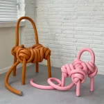 The chair is crafted using a metal framework as its foundation, with soft and flexible silicone material wrapped around it to create its shape spontaneously. This process relies on the artist’s intuition and craftsmanship, giving each piece a unique identity. As every Knot Chair is handmade, the details of the knots differ with each work, emphasizing its originality and individuality. Additionally, slight variations in size (1–5 cm) may occur during the production process, highlighting the inherent characteristics of handcrafted work and enhancing the chair’s distinctiveness.