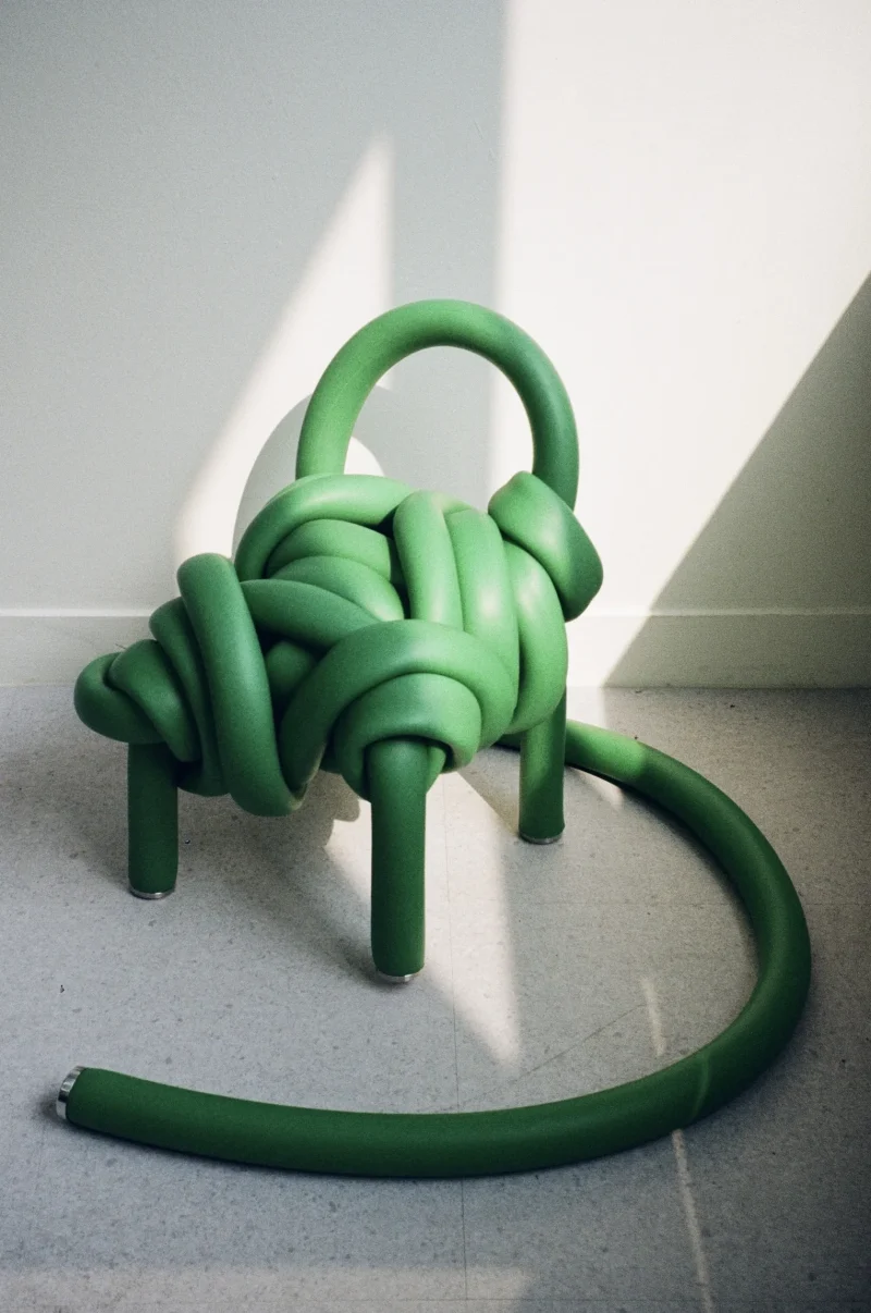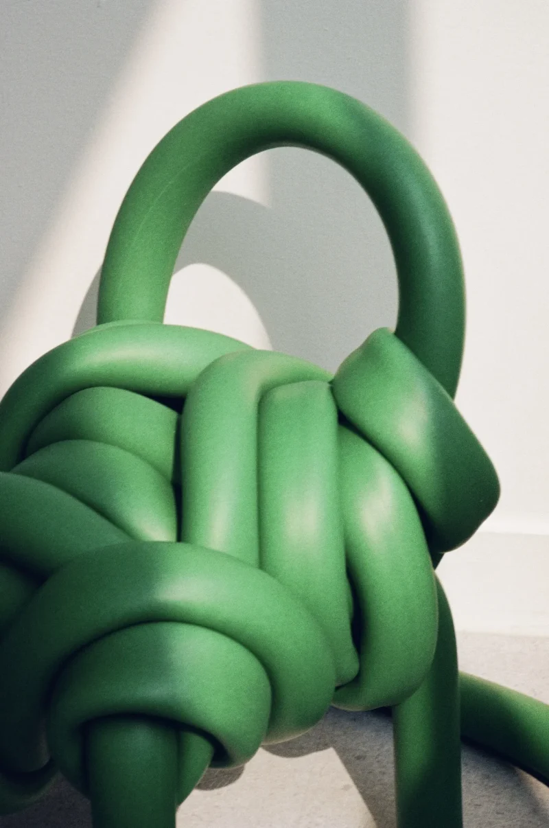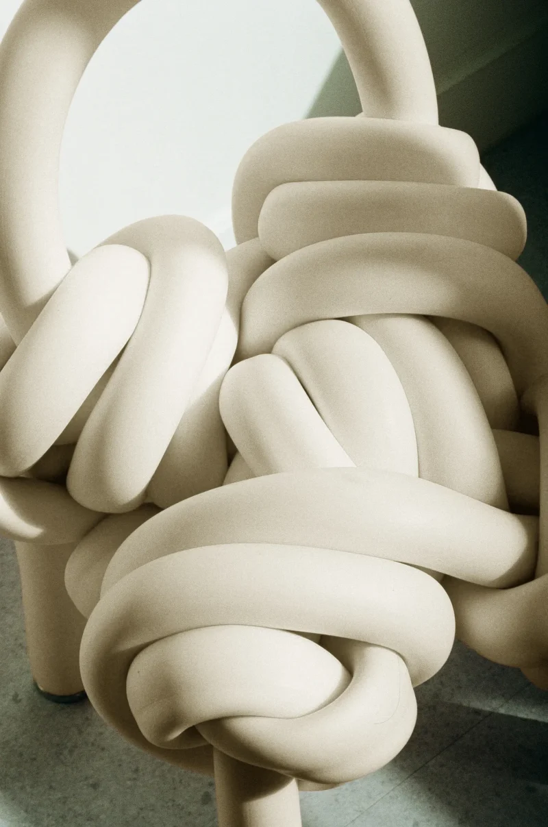 The Knot Chair by Greem Jeong is an extension of the Mono Series, expanding the flow of lines into knotted forms that merge sculptural and experimental design. While the Mono Series explored the organic forms and spatial occupation of a single line, the Knot Chair evolved this concept into a structural and functional object. The complex knotted forms enrich the flow of lines, reinterpreting the traditional concept of knots with contemporary and experimental techniques, breaking the boundaries between sculpture, furniture, craft, and design.