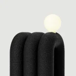 This lamp features a unique and simple curved design made from a biodegradable material based on corn starch, crafted using 3D printing technology. Its textured surface creates a subtle contrast when illuminated, while the arch-shaped structure symbolizes harmony and stability. At the top of the lamp, a spherical bulb emits a warm and cozy light, bringing a serene and comfortable atmosphere to any space. Beyond its basic function of providing light, this lamp serves as an artistic object that enhances and transforms the ambiance of a room. Available in a limited edition of 30 pieces per color, production begins immediately upon order.
