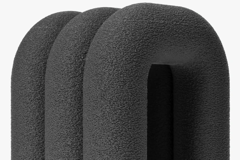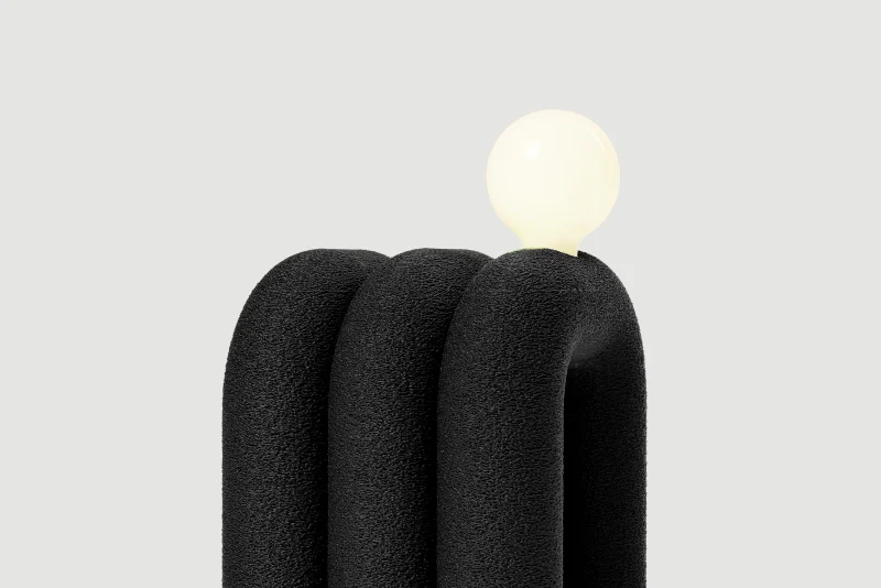 This lamp features a unique and simple curved design made from a biodegradable material based on corn starch, crafted using 3D printing technology. Its textured surface creates a subtle contrast when illuminated, while the arch-shaped structure symbolizes harmony and stability. At the top of the lamp, a spherical bulb emits a warm and cozy light, bringing a serene and comfortable atmosphere to any space. Beyond its basic function of providing light, this lamp serves as an artistic object that enhances and transforms the ambiance of a room. Available in a limited edition of 30 pieces per color, production begins immediately upon order.