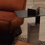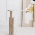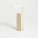The Mono side table by Yet Design Studio has a thin rectangular top which lays elegantly on a thick stone pedestal, creating the appearance that it’s floating on air. The table’s slim silhouette, elegant proportions and dramatic texture make it suitable for almost everywhere. Travertine is a frequently used in architectural structures for its durability and smooth hand, as well as its inherent variation in texture and color.