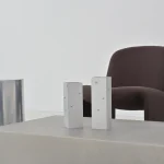 The Mono Vase exploring how a reduced form can enter into a dialogue with jewelry. The cool, puristic shape is contrasted with asymmetrically arranged elements that seem to dance around it, creating a sense of movement and playfulness. These dynamic additions blur the boundary between functionality and ornamentation, making the vase a decorative statement in itself. The interplay of contrasting surfaces further enhances its sculptural quality, emphasizing the tension between simplicity and embellishment.