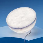 Crafted from the finest alabaster—a natural stone with a moon-like landscape distinguished by flowing waters and intricate veins—each MOON Forty is truly unique. The alabaster is shaped by millennia of natural processes, embodying timeless elegance. Advanced, custom-designed electronics and carefully crafted algorithms bring the lunar cycle to life, syncing with your location and time. The illuminated phase and angle are rendered with extraordinary accuracy, offering a deeply connected and introspective experience.