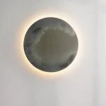 Floating as an alluring, multi-dimensional reflection on the wall, the art object represents an enchanting glimpse into an alternative sphere. Inspired by the luminous band of stars unfolding across the sky, the work captures a dreamy, vibrant reflection, eternally changing depending on the viewer’s perspective. Mirror is with light on the back.