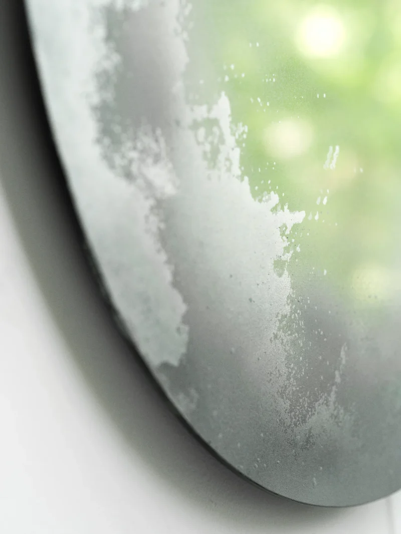 Floating as an alluring, multi-dimensional reflection on the wall, the art object represents an enchanting glimpse into an alternative sphere. Inspired by the luminous band of stars unfolding across the sky, the work captures a dreamy, vibrant reflection, eternally changing depending on the viewer’s perspective. Mirror is with light on the back.