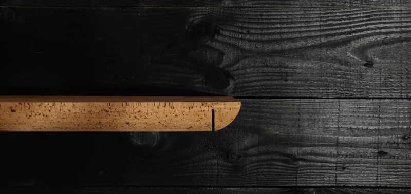 The “Mortaise 400” and the “Mortaise 750” shelf are made of cork and metal, a confrontation of two materials, assembled without glue. A folded metal frame is embed in the cork slab. This allows for recycling of the product at the end of its life and avoids transportation constraints thanks to its flat packaging.