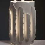 The lamp’s soft, diffused illumination radiates from all sides, casting a gentle, warm glow that enhances its organic form. Its subtle, calming light creates an atmosphere of stillness and connection, evoking the raw, untouched landscapes that inspired its creation. A true celebration of handcrafted design and natural materials, this piece is ideal for those who appreciate the imperfect beauty of artisanal craftsmanship.