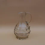 This mouthblown water jug is inspired by glassware that dates back to the 15th century. In the medieval days, wine goblets were not just vessels for holding liquids; they held ceremonial significance. Goblets were often used in religious rituals, feasts, and important gatherings and some goblets were adorned with applied decorations, such as glass trails or small blobs of glass. These embellishments not only served an aesthetic purpose of looking simply dashing but also provided additional grip when eating greasy foods with your hands.