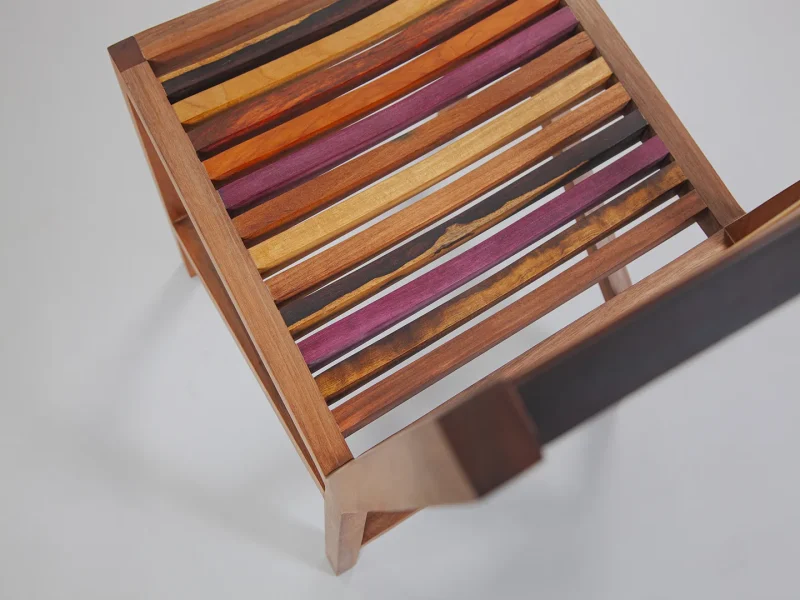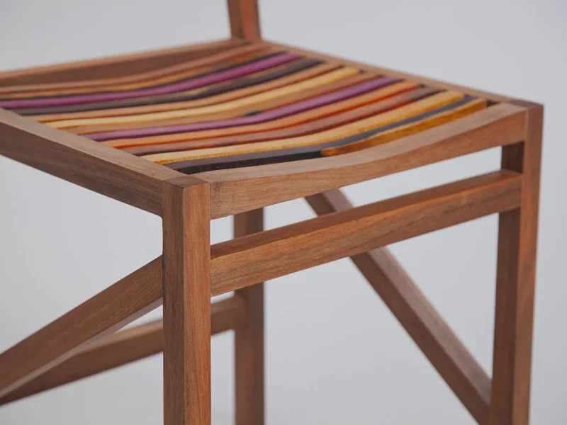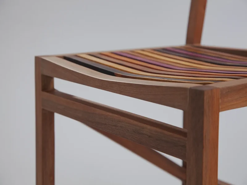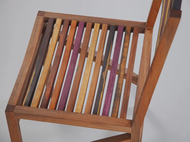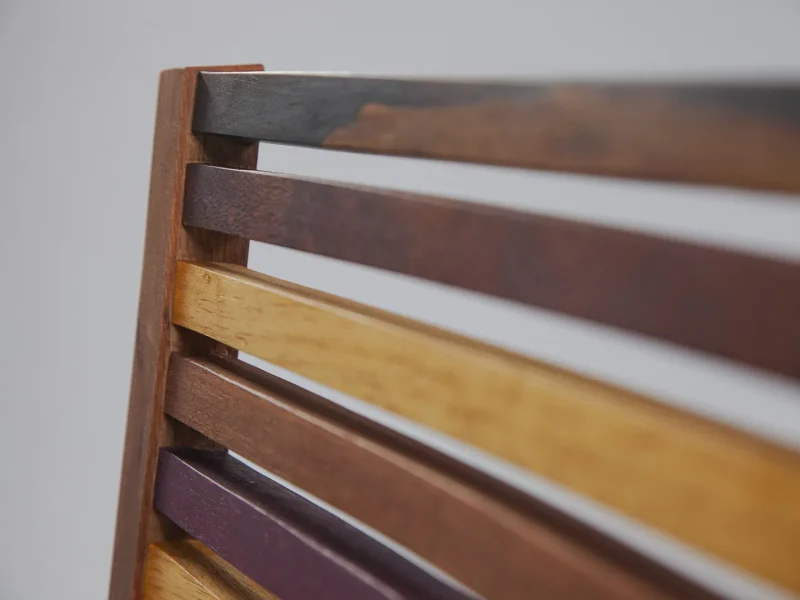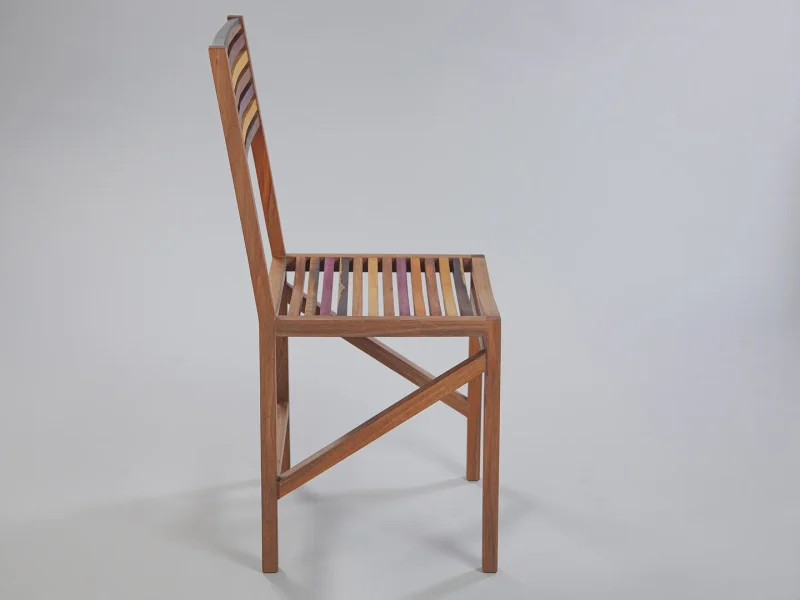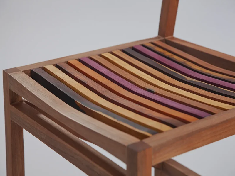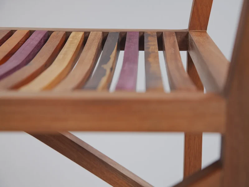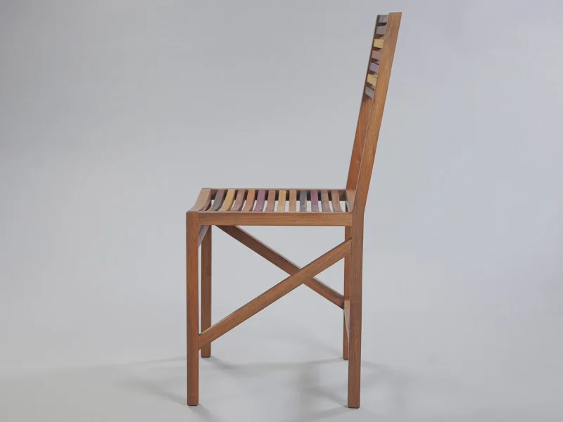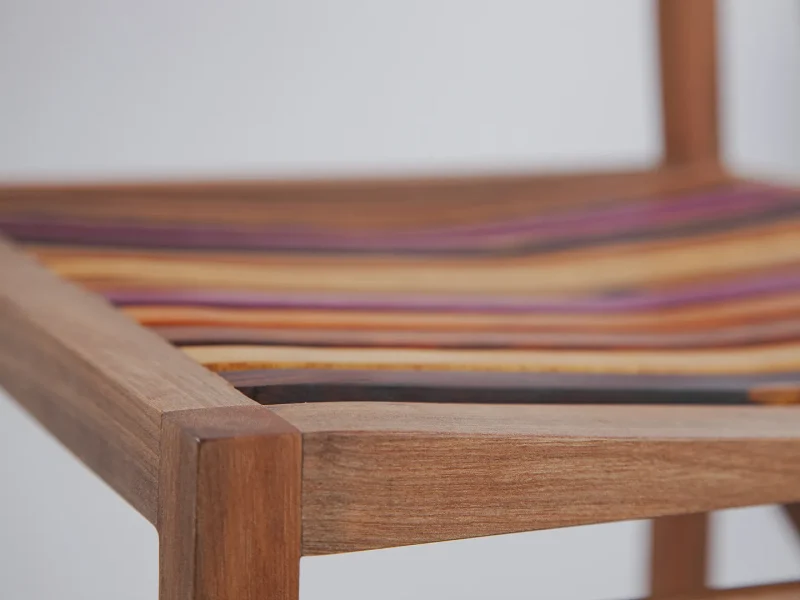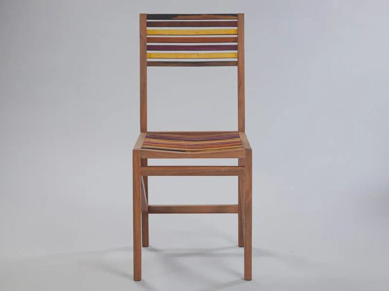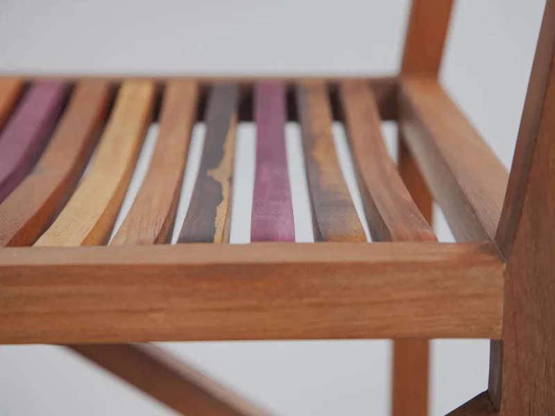 The Moza Chair is a celebration of the conscious use of materials and the rich diversity of Brazilian woods. Each piece is unique, made up of slats from different species of reclaimed wood — forming a true natural mosaic that combines sustainability, beauty, and functionality.