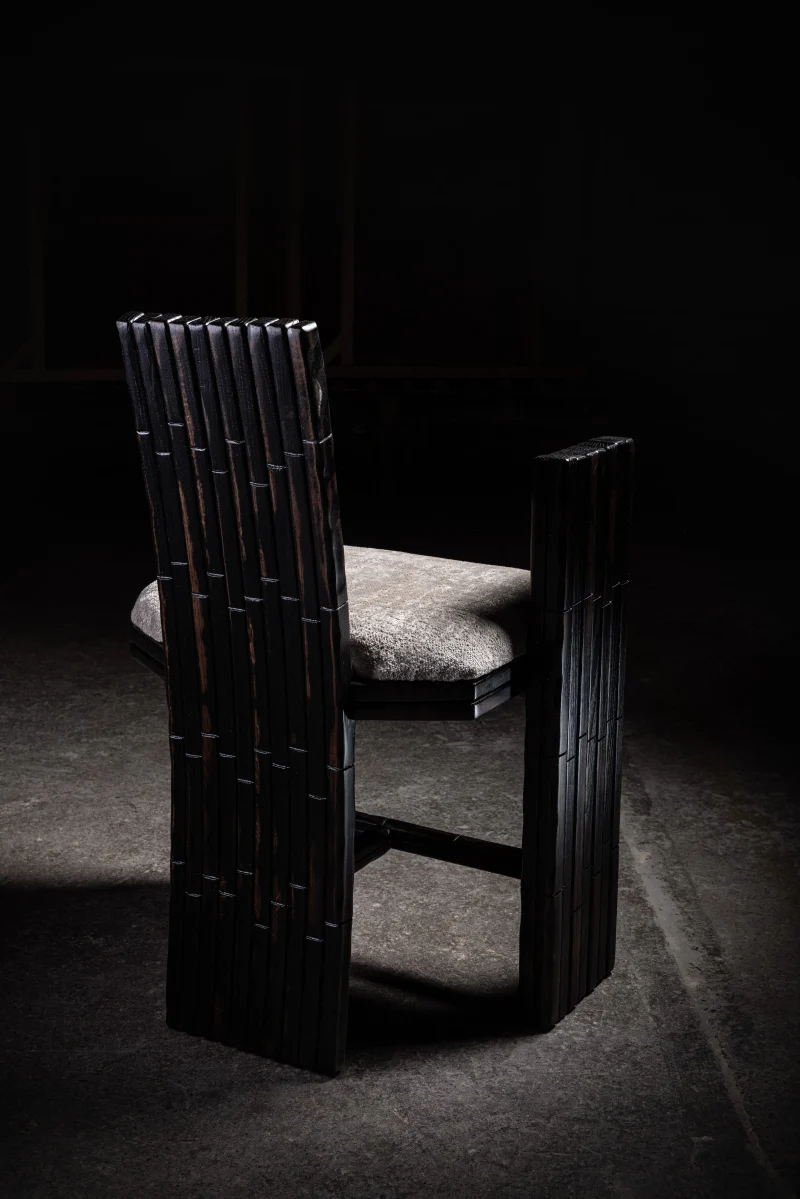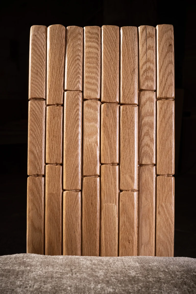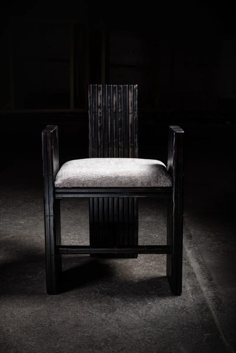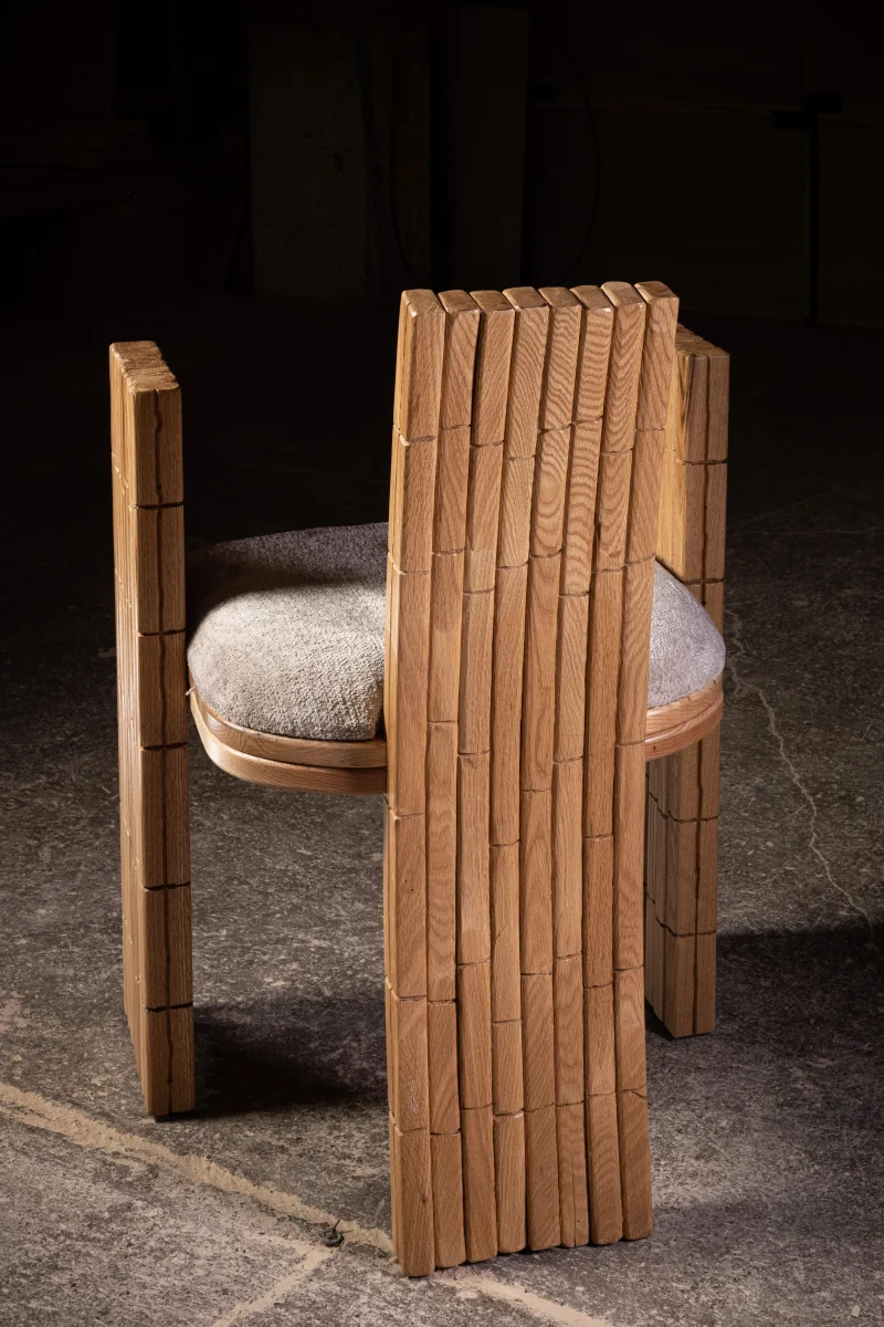 Solid natural oak dining chair by NO AGE STUDIO, with organic bamboo shape and upholstered seat.