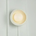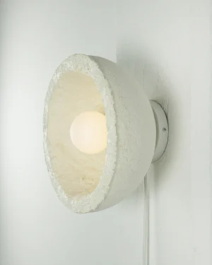 Crafted from sustainable mushroom mycelium, the Cup Light Sconce expands our pendant design into a bold flush mount fixture, ideal for lighting hallways, bathrooms, or creating an eye-catching art installation. Its sleek profile makes it a versatile addition to any interior space.