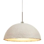 Our most popular fixture, the MushLume Hemi Pendant, features a 23” diameter dome handcrafted from carbon-sequestering hemp and living mushroom mycelium. Perfect for eco-conscious spaces, this sustainable hanging lamp offers a nature-inspired design that creates a lasting impression.