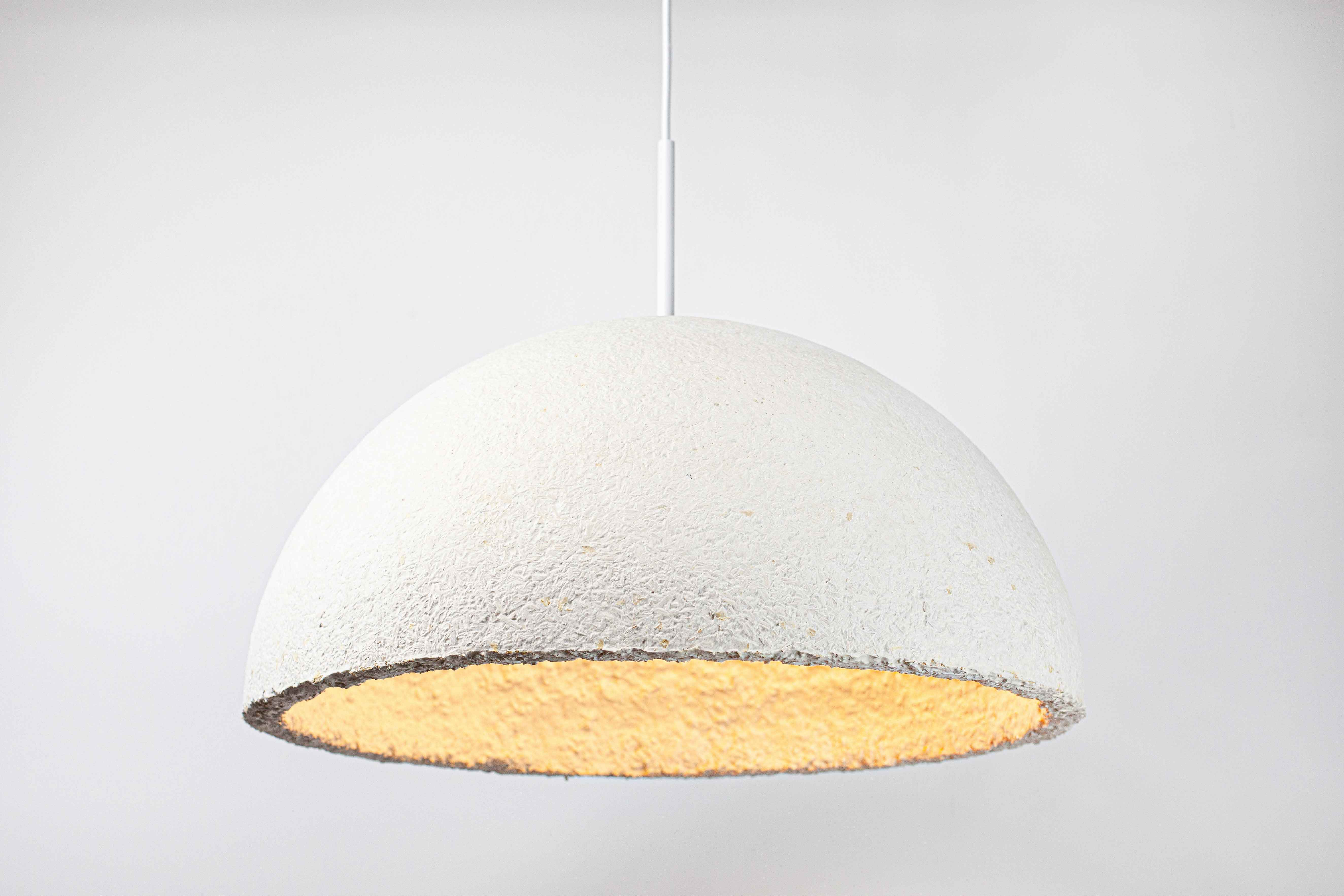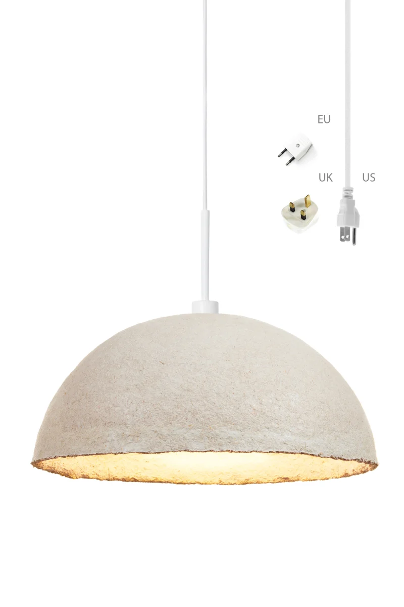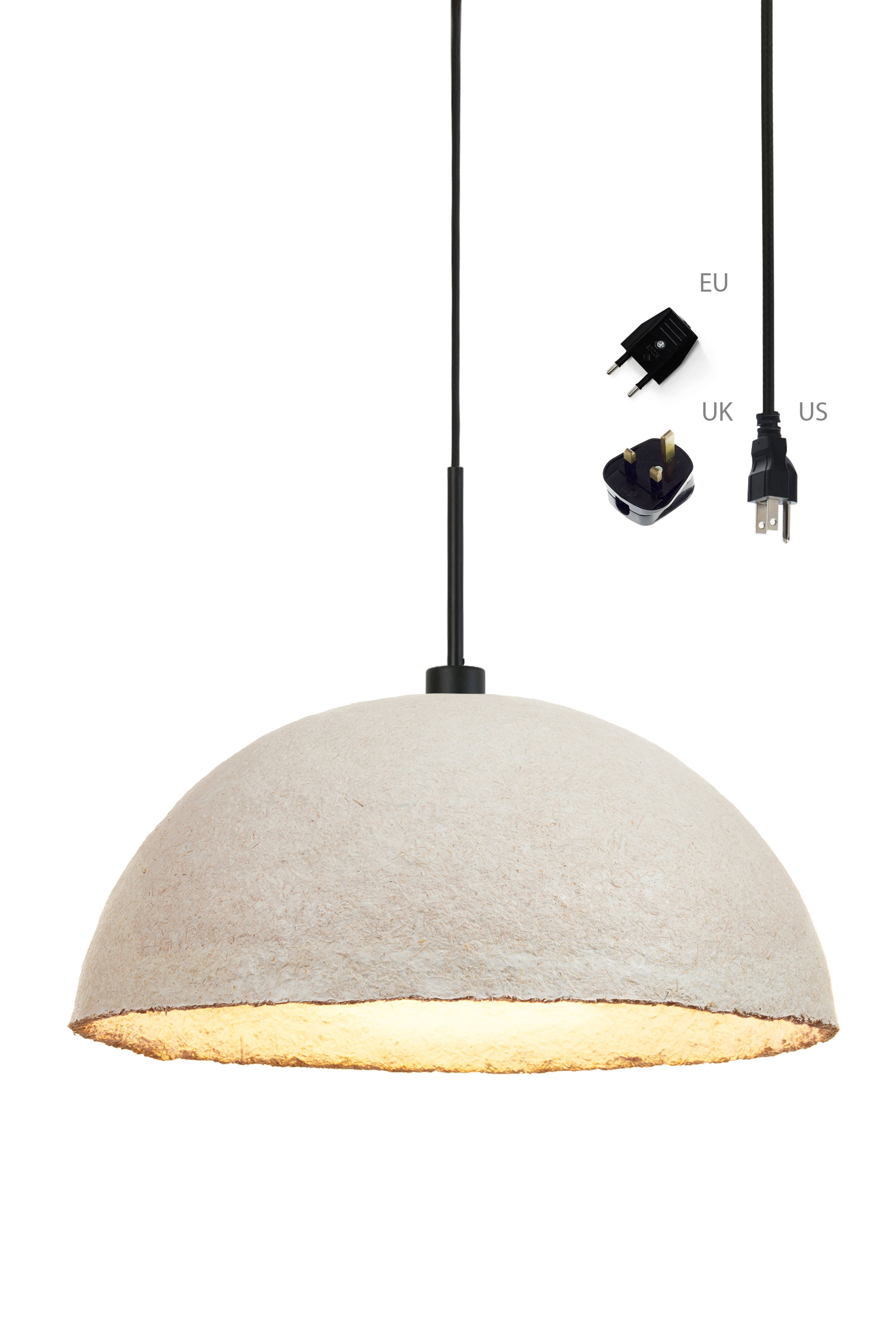 Our most popular fixture, the MushLume Hemi Pendant, features a 23” diameter dome handcrafted from carbon-sequestering hemp and living mushroom mycelium. Perfect for eco-conscious spaces, this sustainable hanging lamp offers a nature-inspired design that creates a lasting impression.