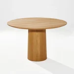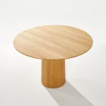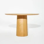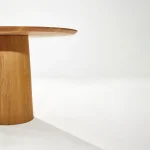 Traditional cooperage skills give the idea for MUSHROOM-FS. The grounded cone and the floating top with a span of 120 cm and an edge that tapers to 25 mm are an exciting contrast. 18 knotless staves are individually manufactured in barrel construction and then elaborately turned by hand to form the round cone. The oak table is finally sanded and oiled. Its top rests in the shadow gap on the cone. Weights within the cone ensure stability and steadiness. Top and cone are reversibly screwed together. The MUSHROOM-FS dining table is also available as MUSHROOM-PS side table.