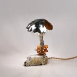 The mushroom component of the lamp has been chemically treated for preservation and hardened, but it remains delicate. Please avoid handling or lifting the piece by the mushroom itself.