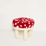 This Mushroom Wool Stool dates back to the late 1960s and early 1970s, offering a distinctive blend of vintage character and contemporary artisanal quality. Upholstered in beautiful, one-of-a-kind wool fabric, the piece stands out through its unique texture and form.