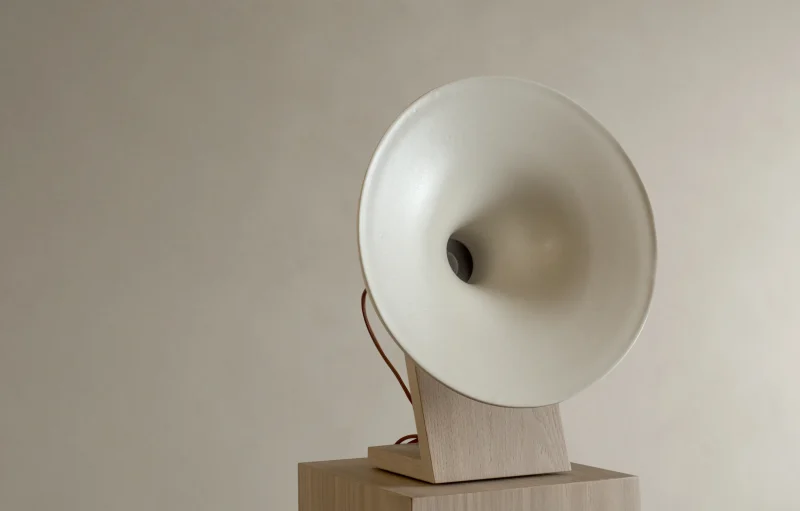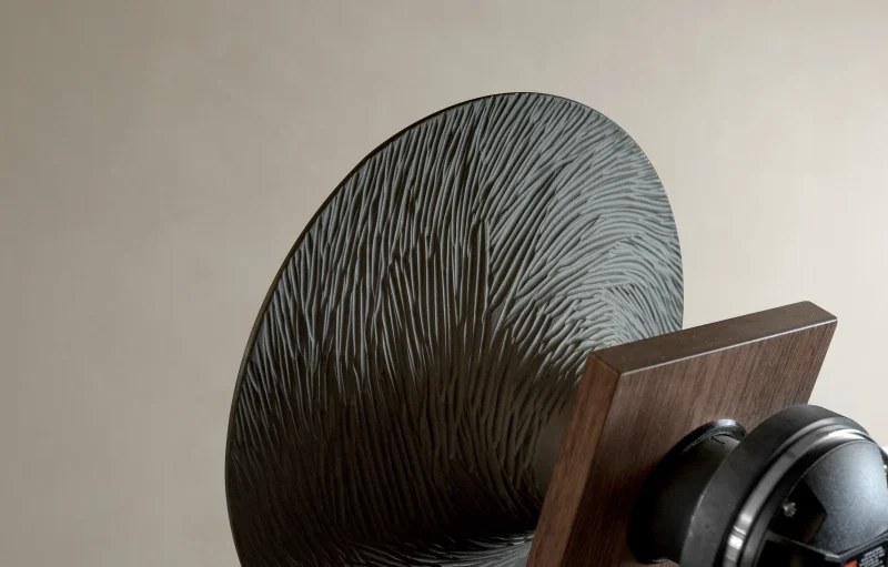 The horns are slip-cast in dense stoneware, then glazed or hand-carved to create a mineral surface that’s as tactile as it is functional. Ceramic’s natural damping properties allow the horn to remain inert—only the air inside moves—preserving clarity and detail across frequencies. The result is immersive, directional sound with remarkable presence and microtexture.