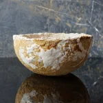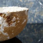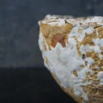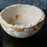 this bowl is organically grown from the mycelium of a regional medicinal mushroom and is comparable to wooden bowls for storing and serving dry food. i am fascinated by its lively texture and natural coloring, as well as its lightness and toughness. its weight and stability are comparable to cork, the surface is reminiscent of leather and it can be treated and cared for in the same way, for example with oil and wax. the surface of this example is untreated and yet already water-repellent, even if permanent contact with liquids would soften the material.