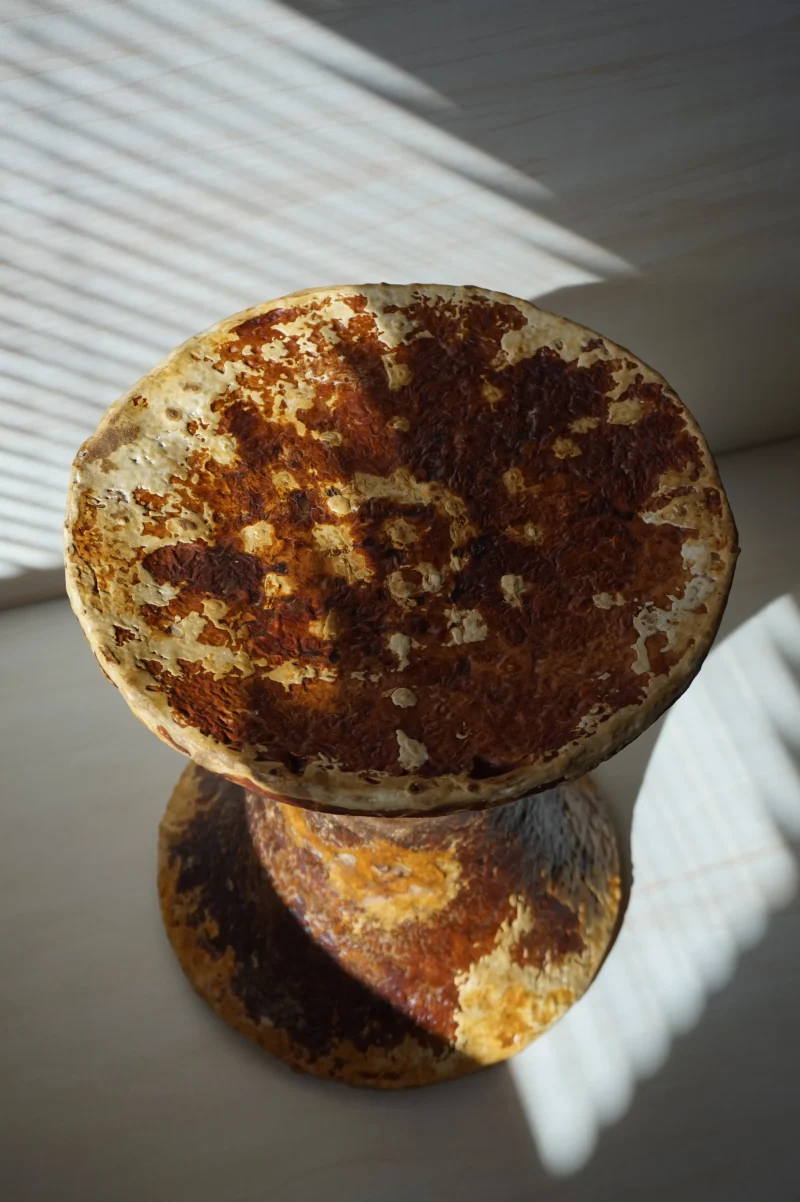 Bio material biodegradable design Biomaterial Bowl Collectible Design Contemporary furniture earth concrete eco design Experimental Design fungal furniture future furniture Grown grown furniture living material Material innovation Mushroom mycelium Mycelium stool Mycomaterial natural furniture nature-inspired organic Organic Design organic stool Sculptural stool Sustainable Furniture tactile surface